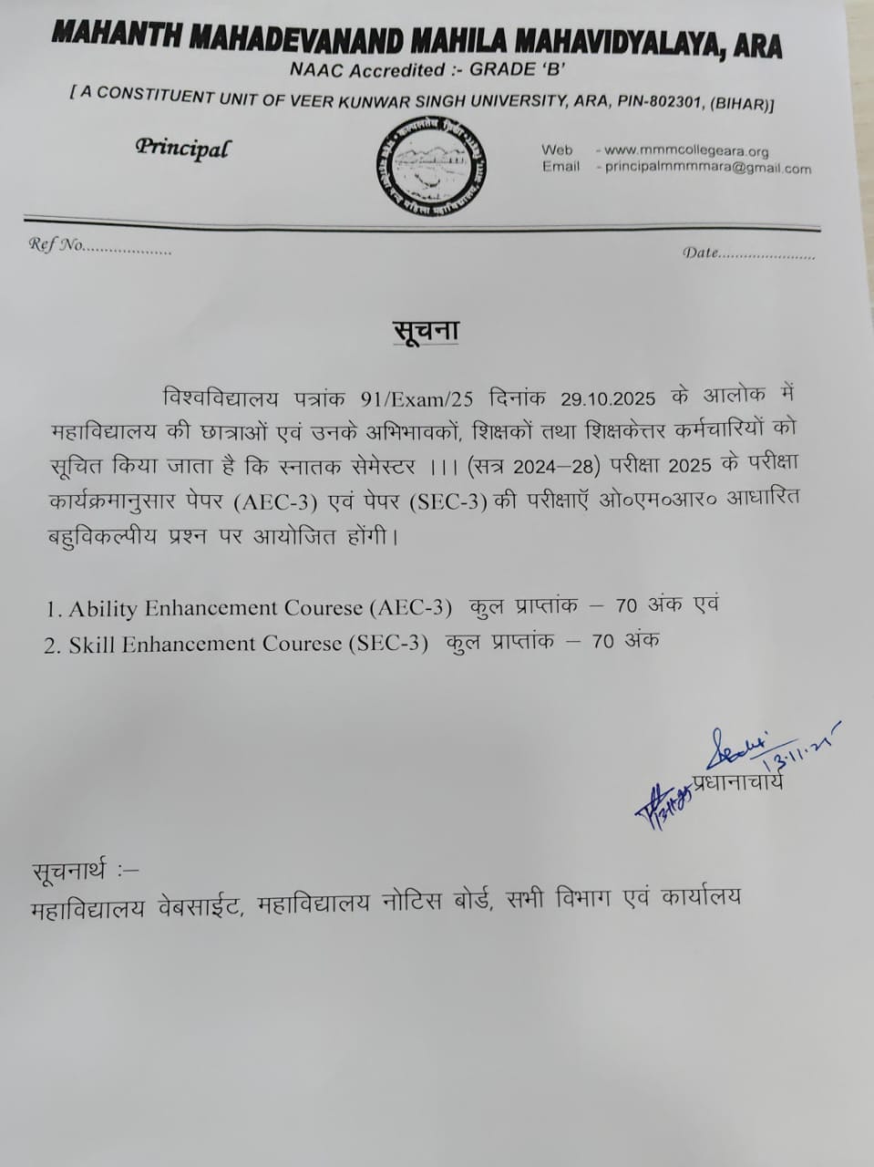Mahanth Mahadevanand Mahila Mahavidyalaya is a constituent unit of Veer Kunwar Singh University (VKSU), Ara, and is recognized by the University Grants Commission (UGC). The institution follows the principles of the National Education Policy (NEP) to ensure inclusive and forward-looking education.